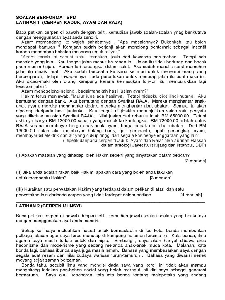 Contoh Soalan Cerpen Kaduk Ayam Dan Raja Soalan V