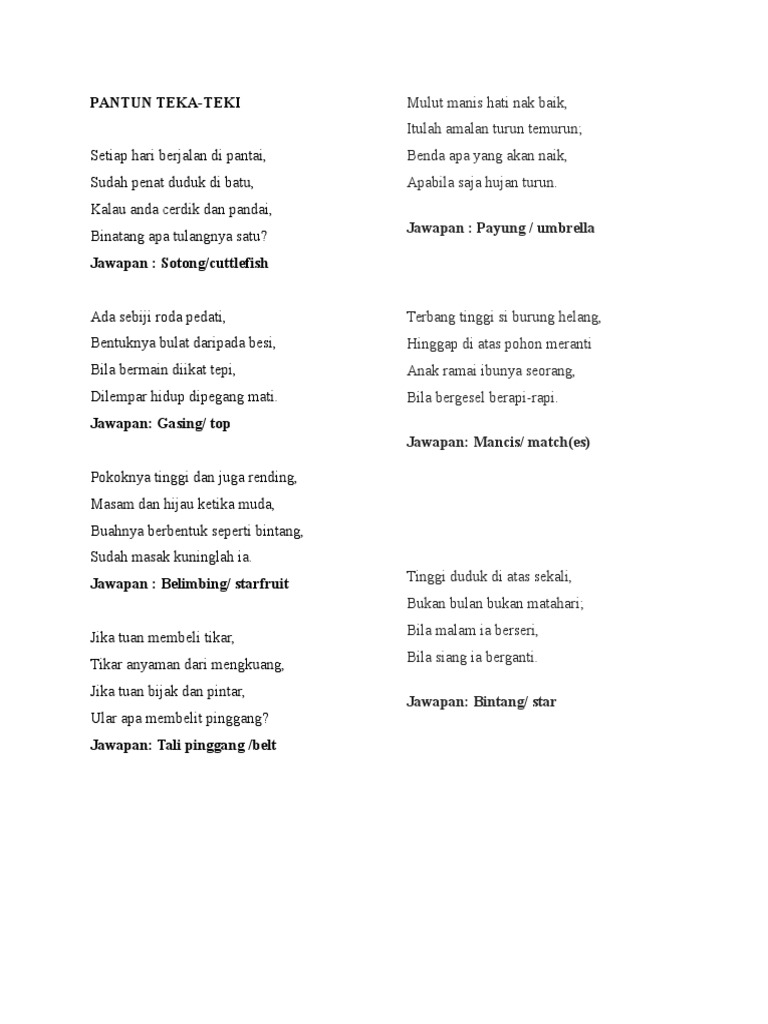 Pantun Teka Teki Dan Jawapan Page 1 Line 17qq Com