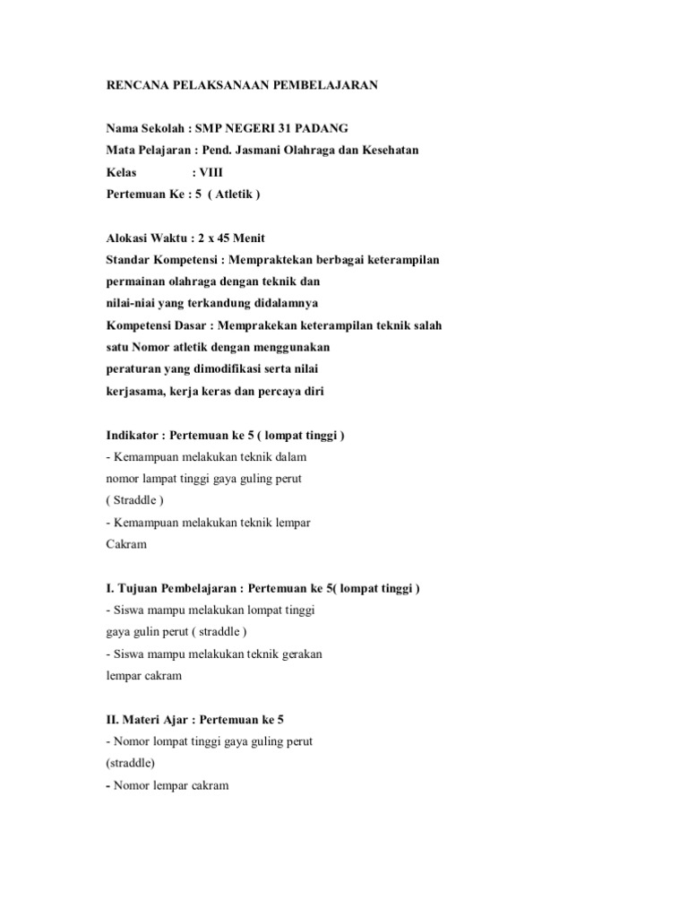 Rpp Lompat Tinggi Gaya Guling Perut