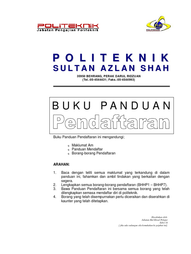 Buku Panduan Politeknik Sultan Azlan Shah 2019 Utama Savesave Politeknik Sultan Azlan Shah For Later Kinara Sana