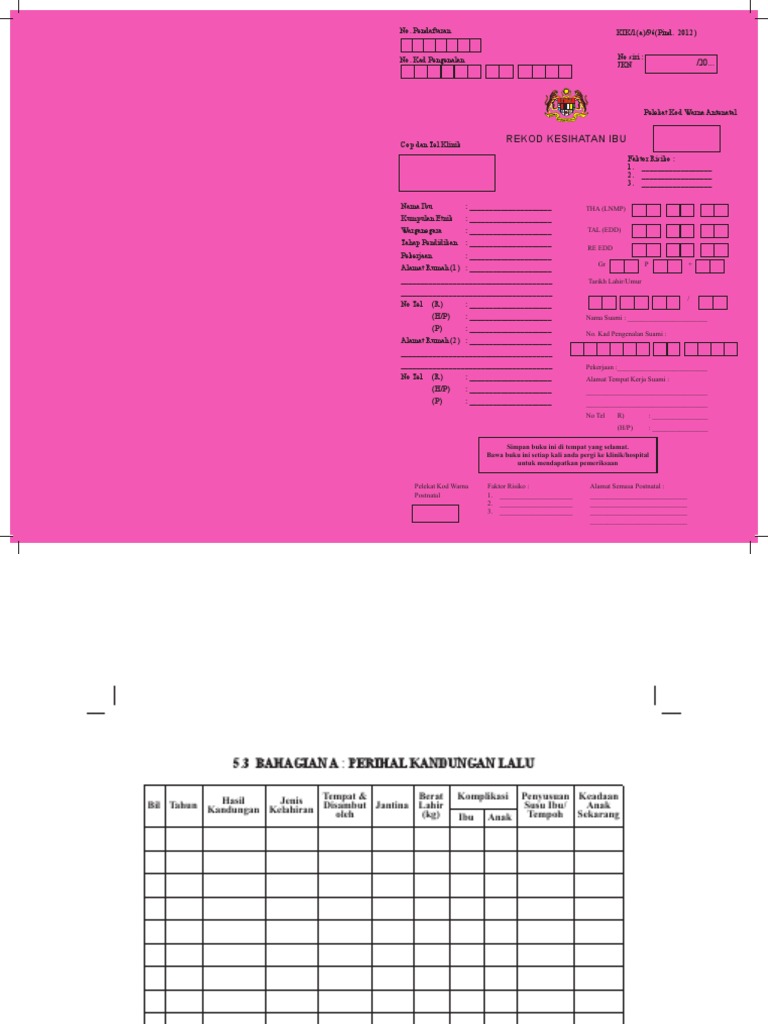 Buku Rekod Kesihatan Ibu Mengandung In English