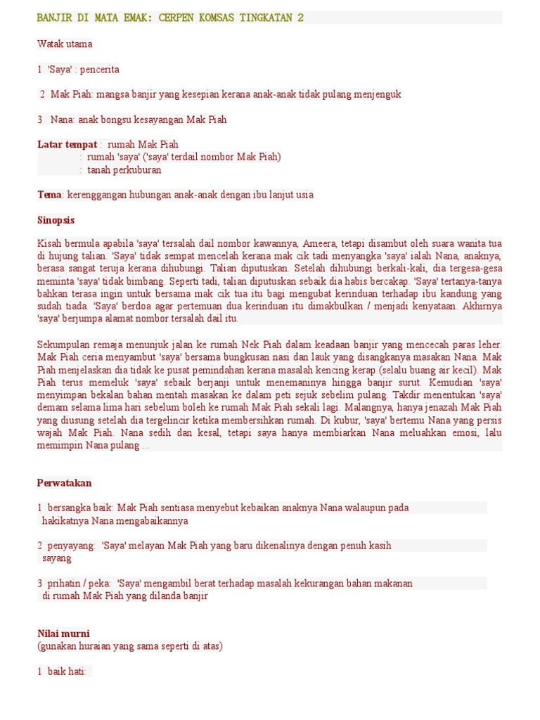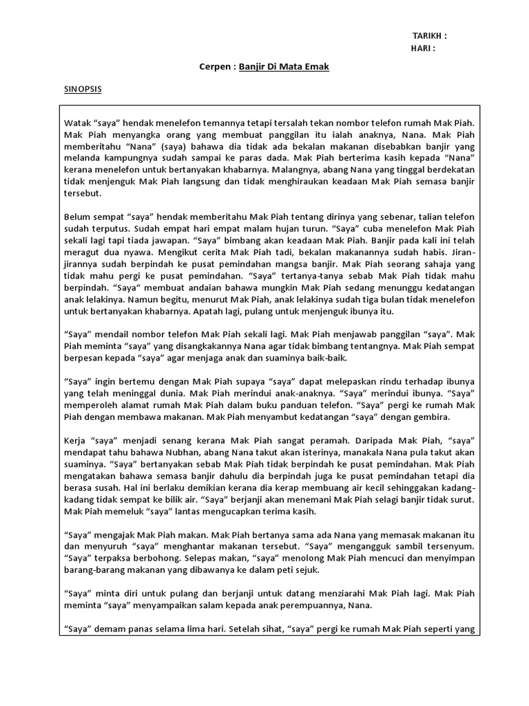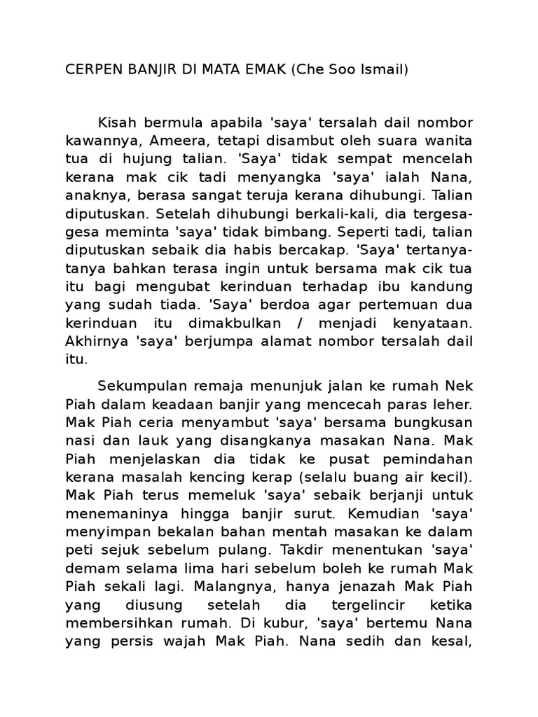 Doc Cerpen Banjir Di Mata Emak Karya Che Soo Ismail Ain Anuar Academia Edu