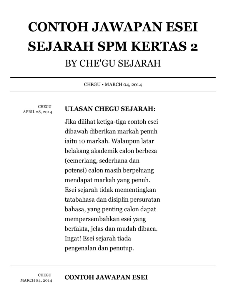 Contoh Jawapan Essei Spm Sejarah Kertas 2