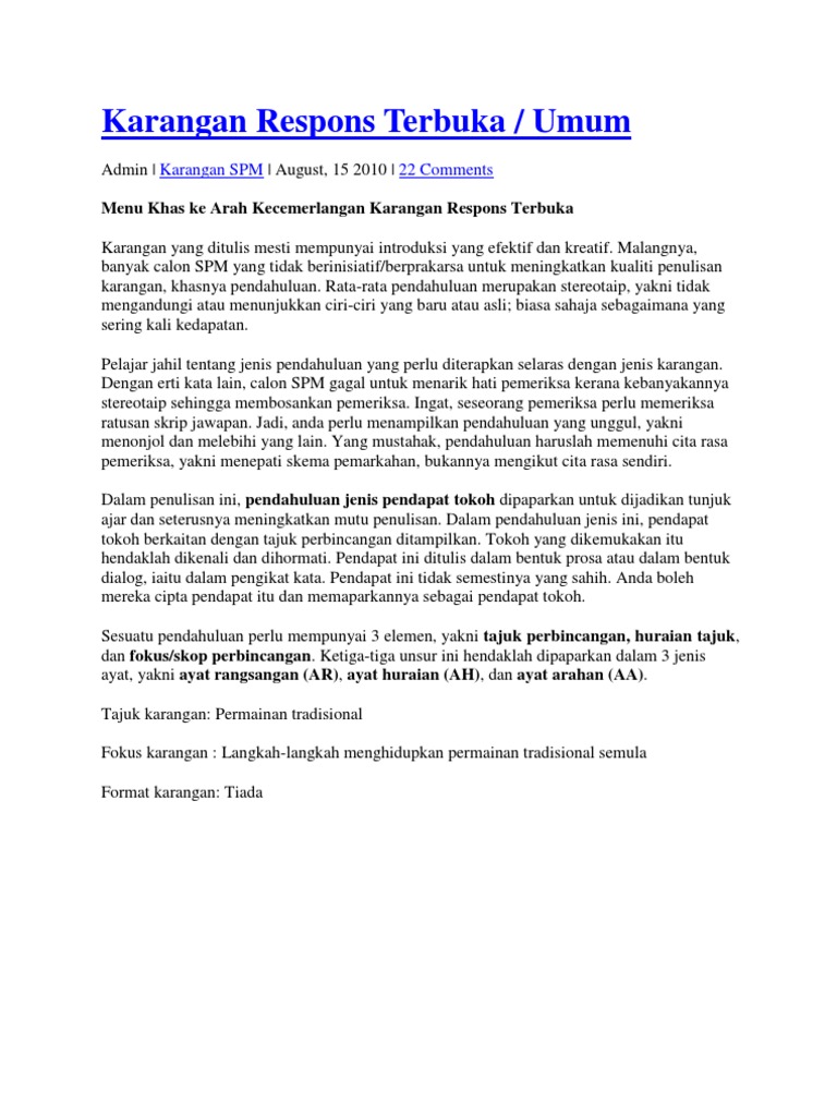 Contoh Karangan Umum Dan Jawapan