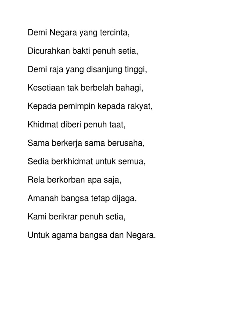 Lirik Lagu Setia Demi Negara Yang Tercinta Doc Docx