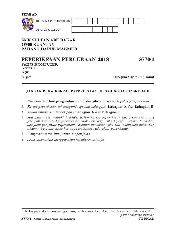 Percubaan Spm Sains Komputer Kelantan 2018 Sumber Pendidikan
