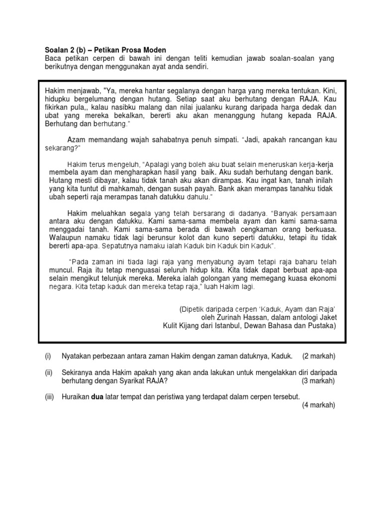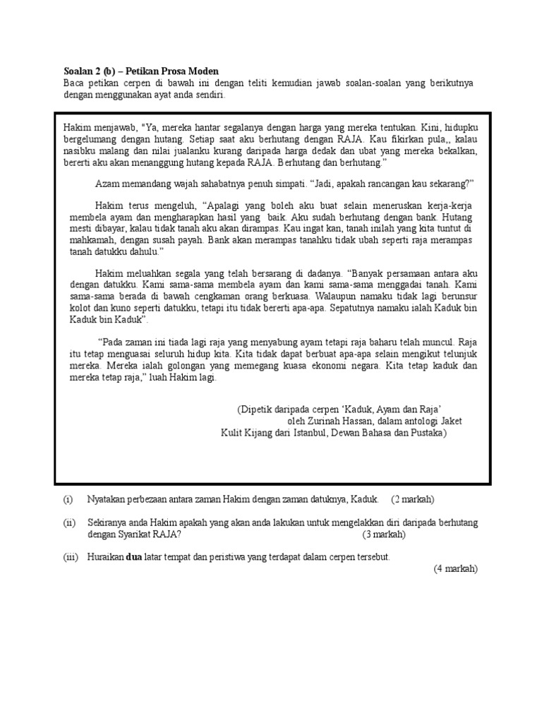 Contoh Soalan Cerpen Kaduk Ayam Dan Raja Soalan V