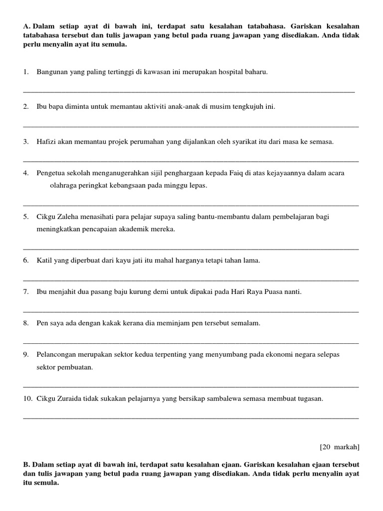 Contoh Soalan Kesalahan Bahasa Tingkatan 1 Persoalan O