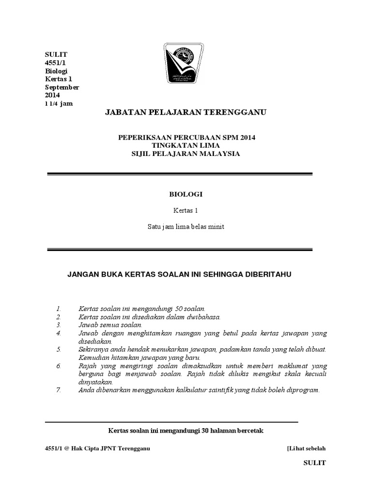 Trial Terengganu Spm 2013 Biology Ques Scheme All Paper