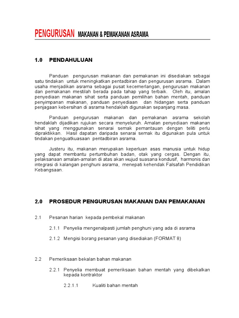 Buku Panduan Pengurusan Makanan Dan Pemakanan Di Asrama