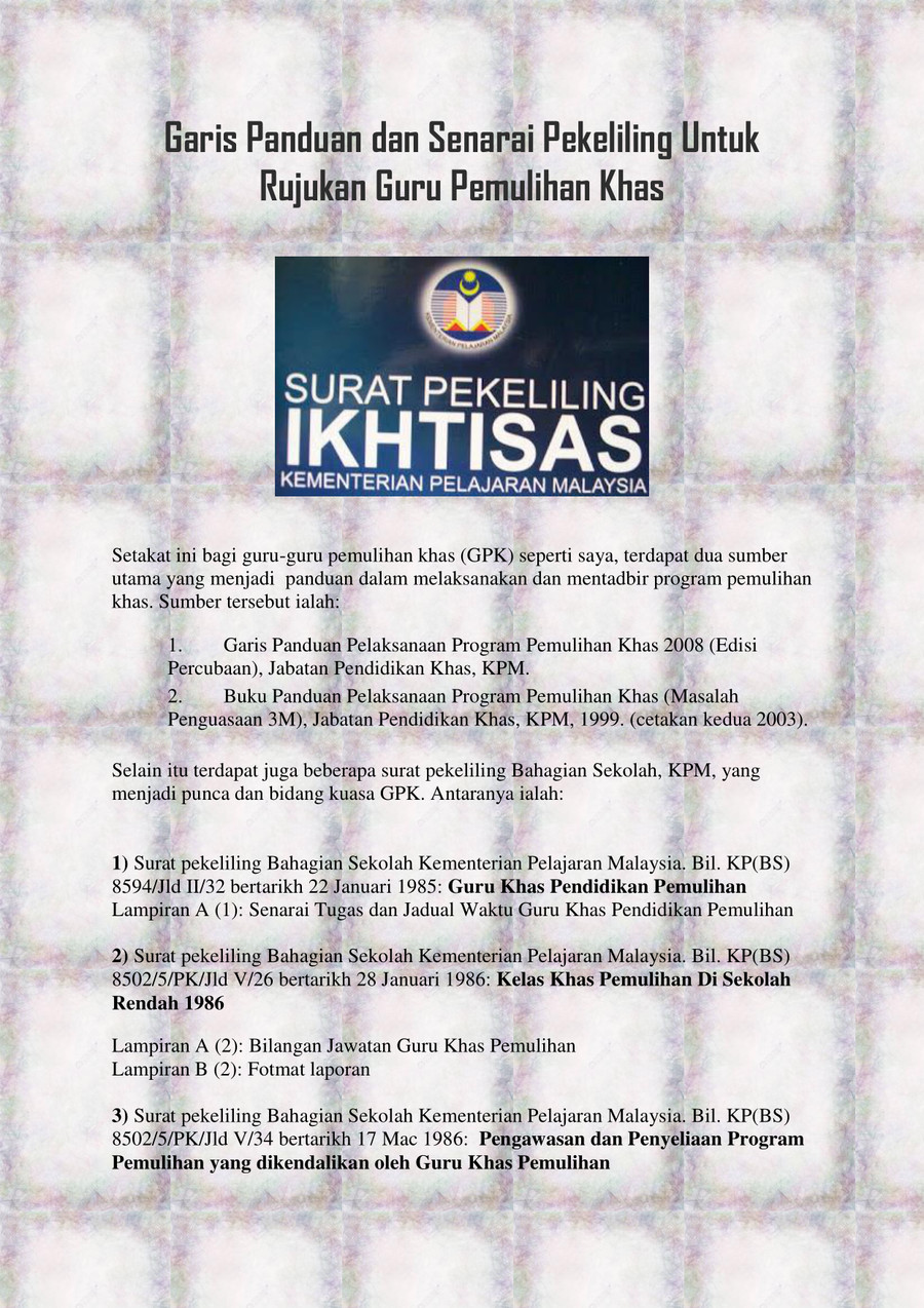 Cikgu Hijau Garis Panduan Dan Senarai Pekeliling Untuk Rujukan Guru Pemulihan Khas