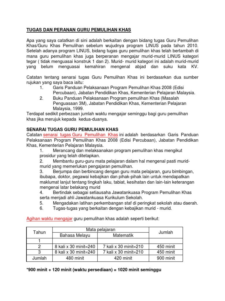 Tugas Dan Peranan Guru Pemulihan Khas