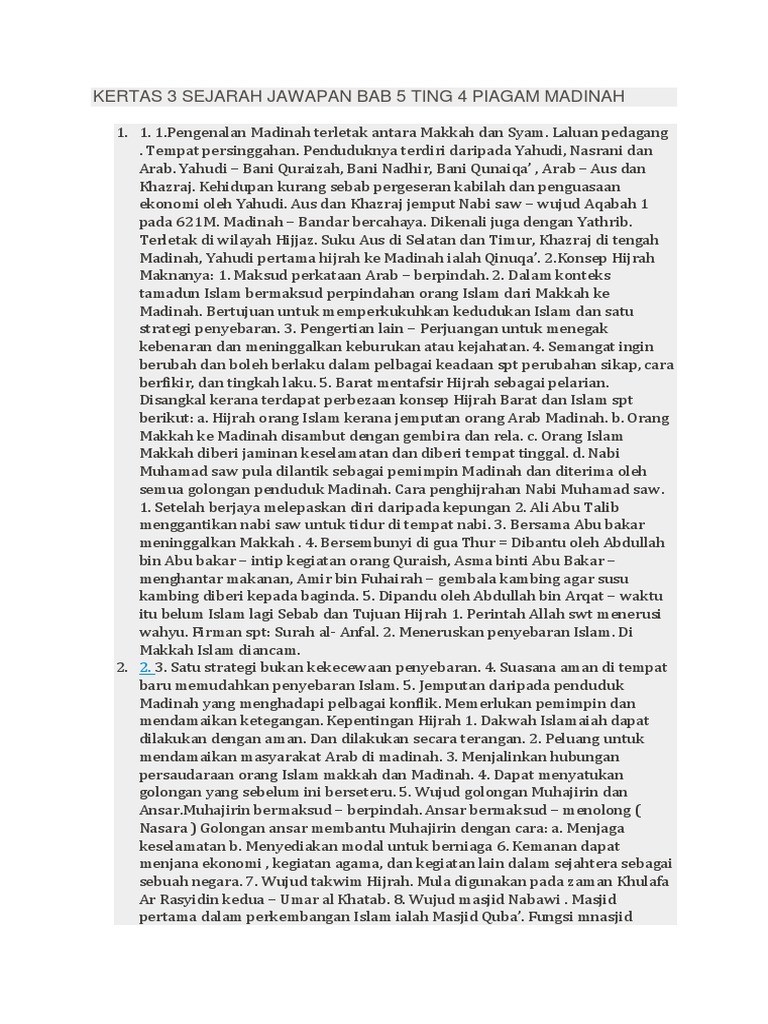 Kertas 3 Sejarah Jawapan Bab 5 Ting 4 Piagam Madinah