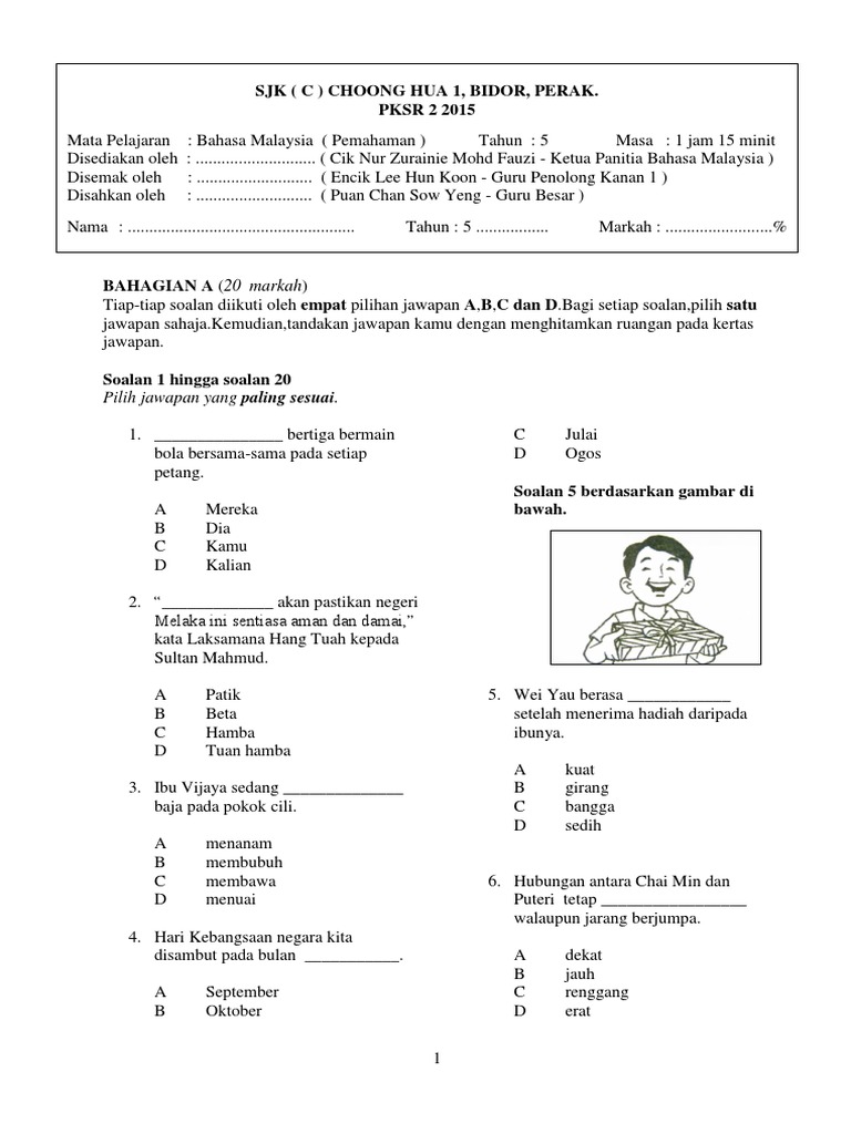 Ujian Pemahaman Bahasa Malaysia Tahun 5 Sjk