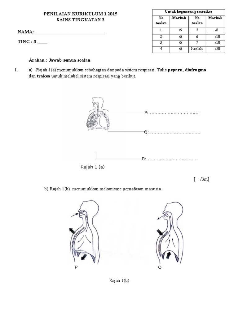 Jawapan Latihan Sains Tingkatan 3 Bab Respirasi