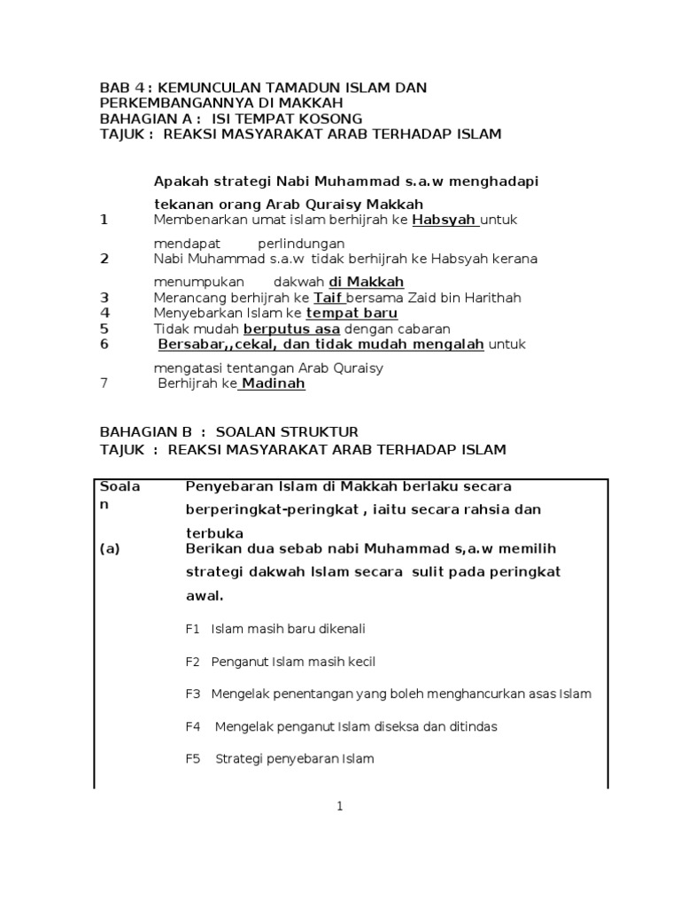Jawapan Mengapa Orang Quroisy Menentang Rasulluallah Dalam Betuk Esei