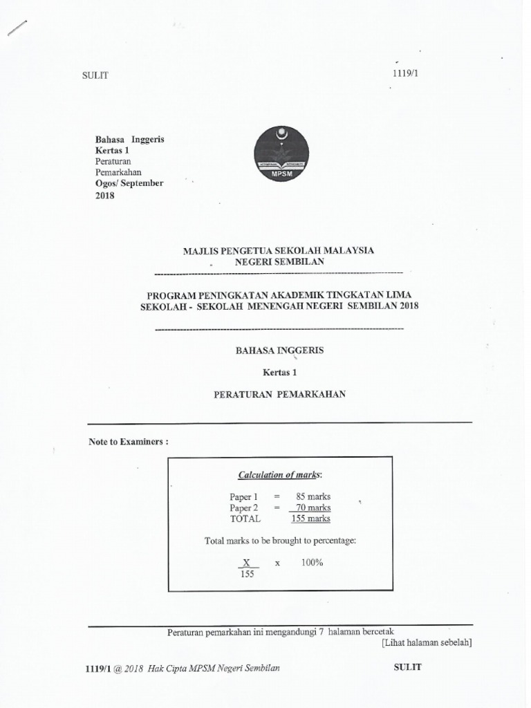 Spm Trial Negeri Sembilan 2018 English Marking Scheme