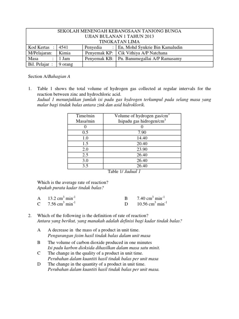 Latihan Kimia Tingkatan 5 Bab 1 Beserta Jawapan