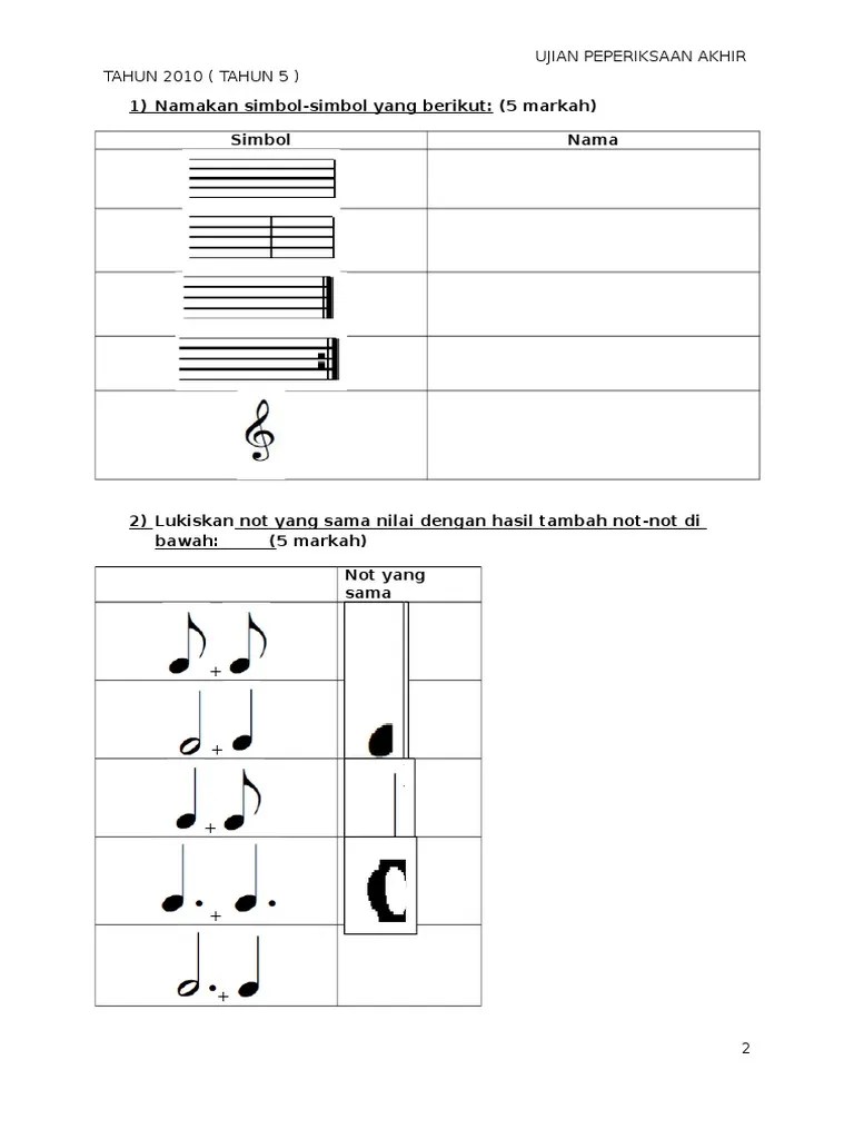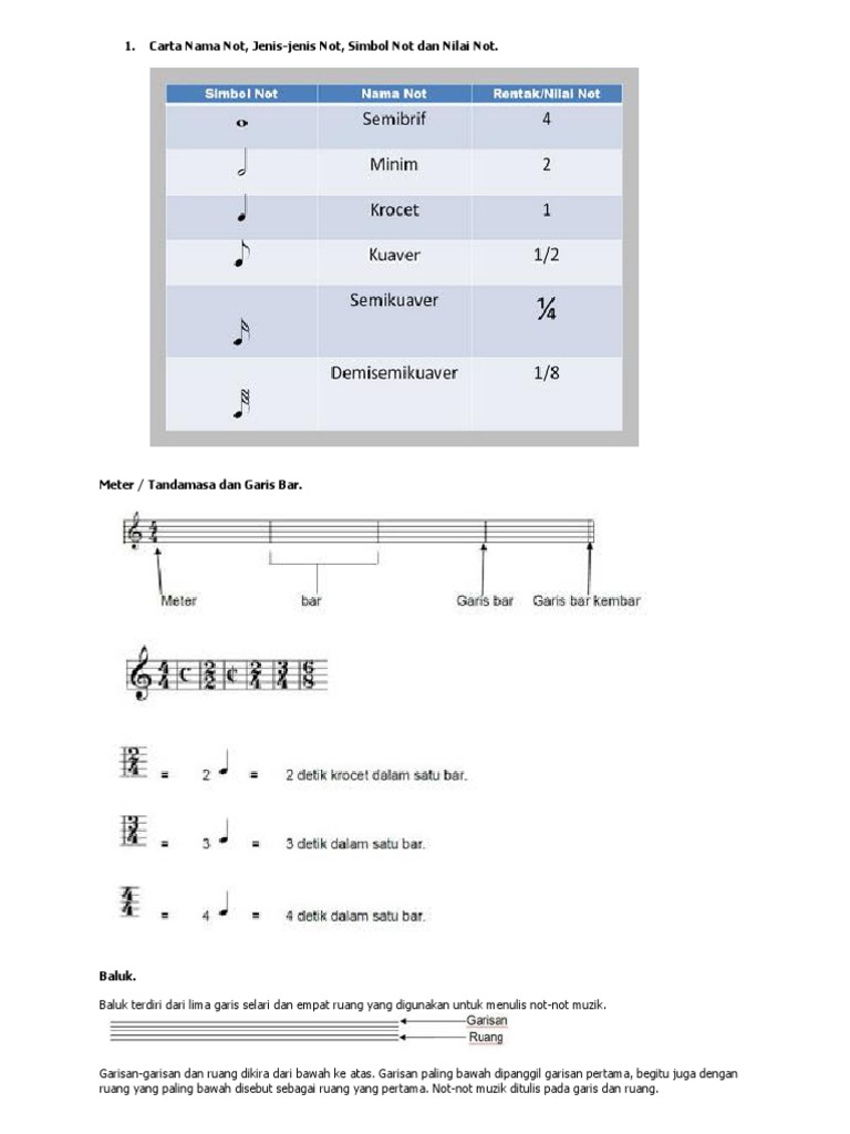 1 Carta Nama Not Jenis Jenis Not Simbol Not Dan Nilai Not