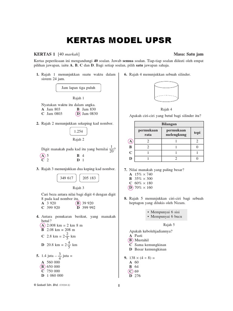 Jawapan Ekstra Kertas Model Upsr Modul Aktiviti Pintar Cerdas Matematik Tahun 61