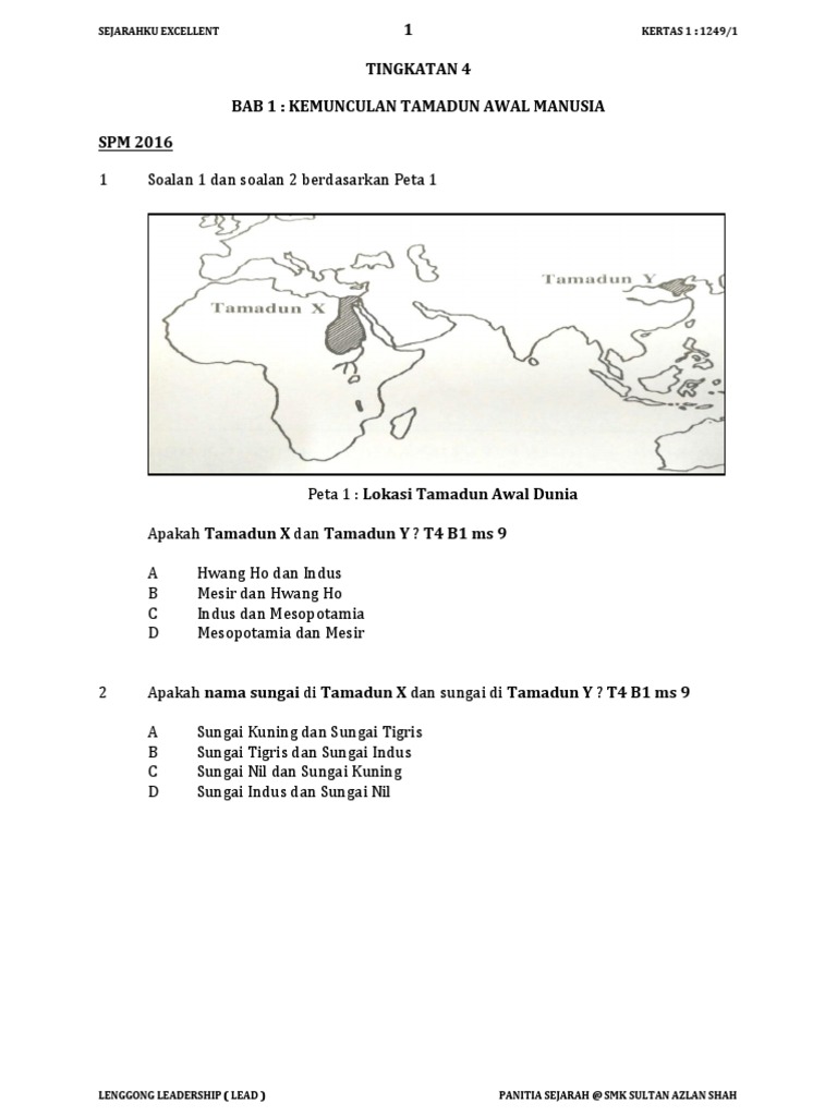Sejarahku Excellent 1 K1 2016 Soalan Spm Sejarahku Excellent 3 Kertas 1 1249 1 Yusuff B Ahmad Pdf Document