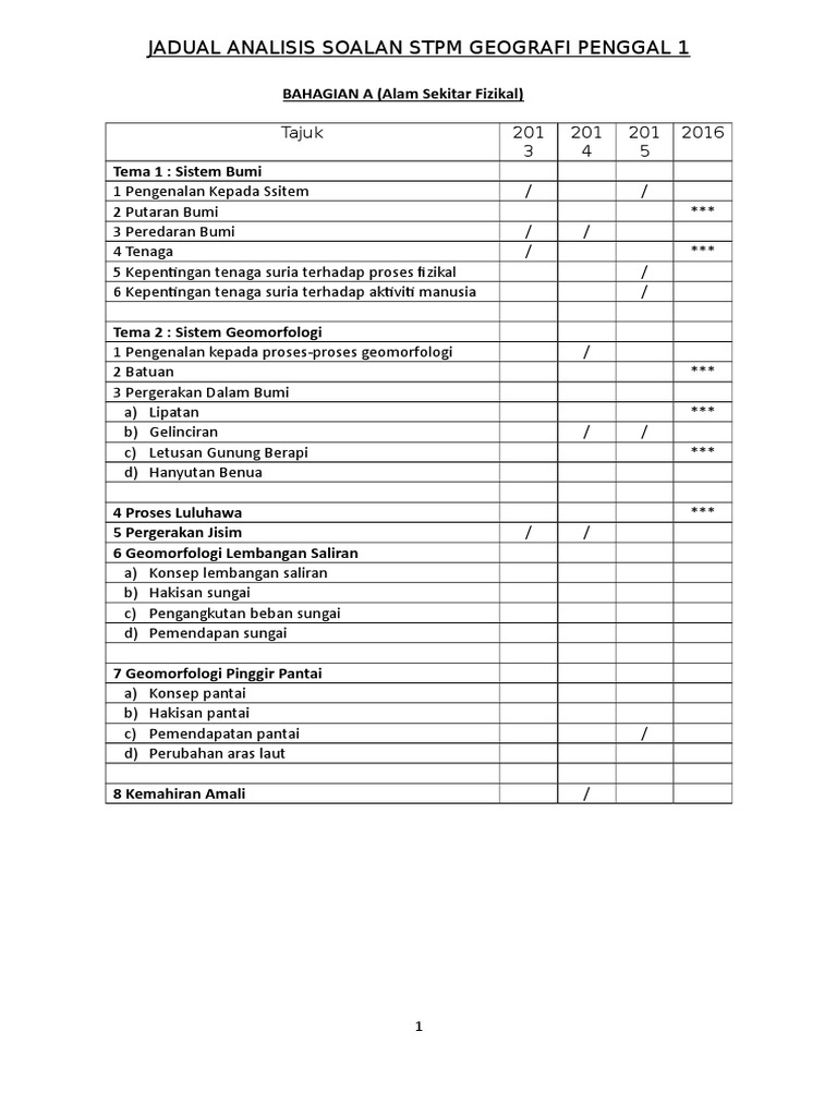 Analisis Soalan Stpm Geografi P1 2012 2013 2014 Dan 2015