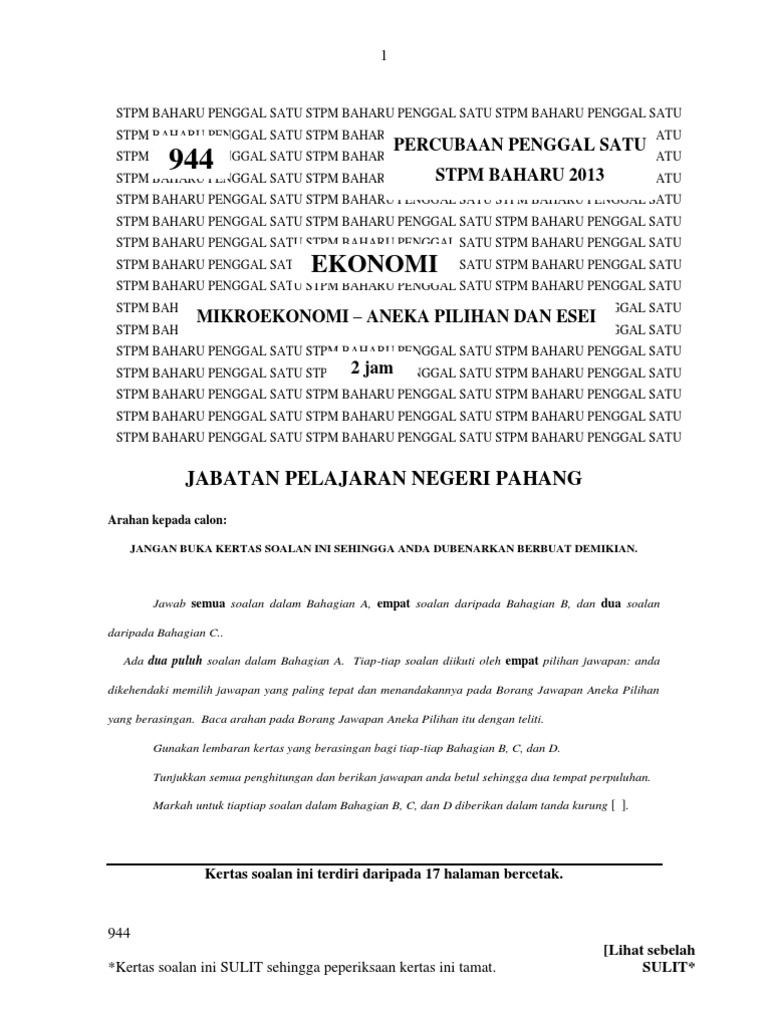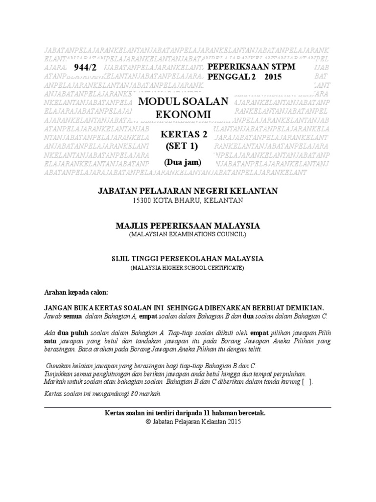 Percubaan Ekonomi S2 Kelantan Pdf Sulit Course Hero