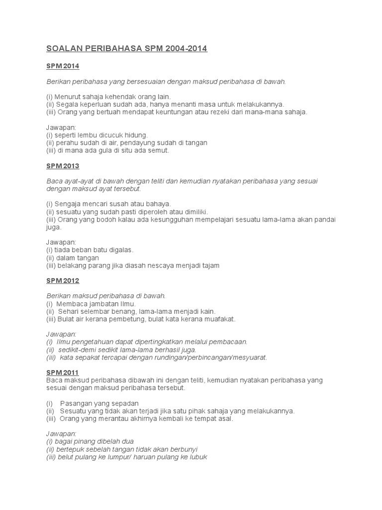 Soalan Peribahasa Spm 2013 Dan Jawapan