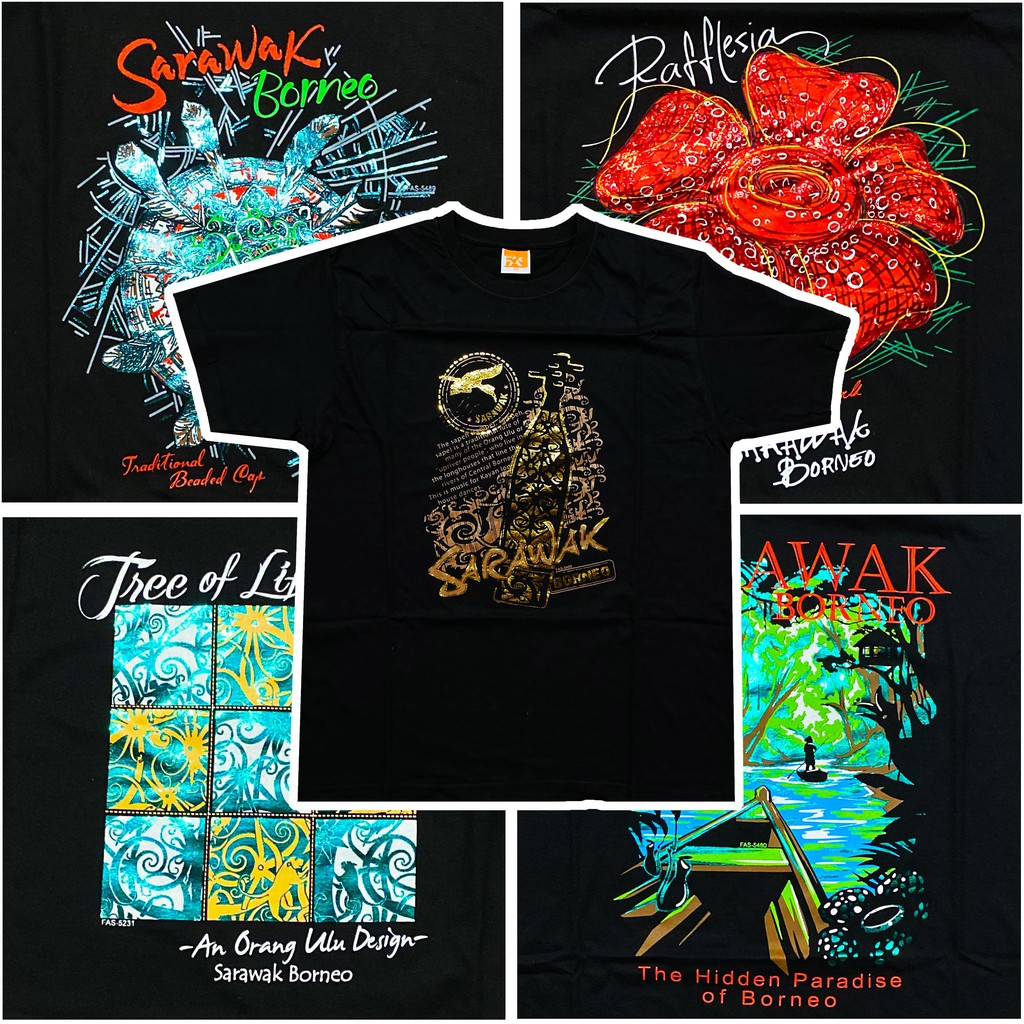 Printed T Shirts With Sarawak Designs Black With Foil Printing Borneo Tshirt Unisex Shopee Malaysia