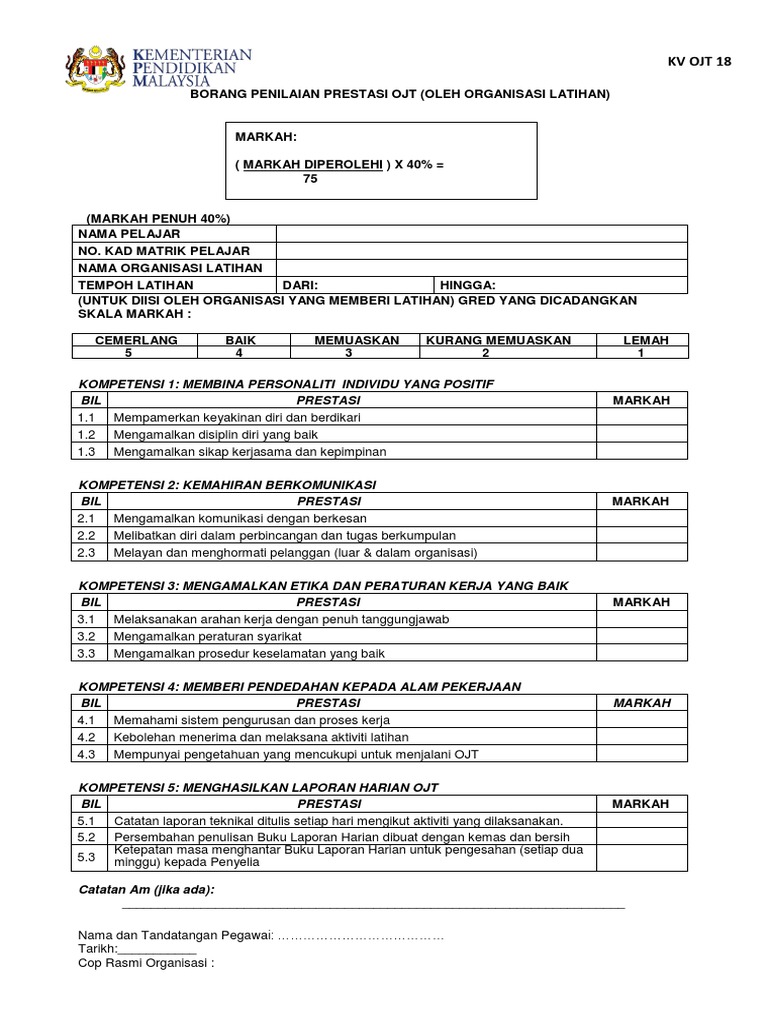 Borang Pendaftaran Ojt Doc Kv Ojt 02 Borang Pendaftaran On The Job Training Ojt Sesi Latihan 2017 2018 Tempoh Latihan U2013 Nama No K P No Kad Matrik Course Hero