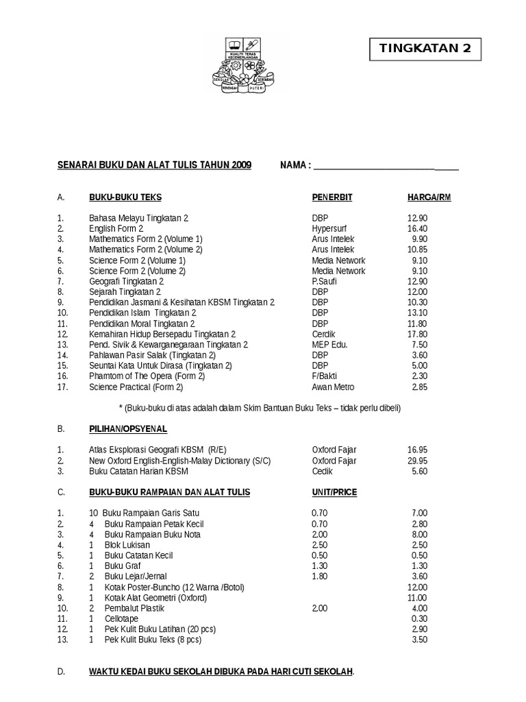 Buku Teks Kemahiran Hidup Tingkatan 2 Online