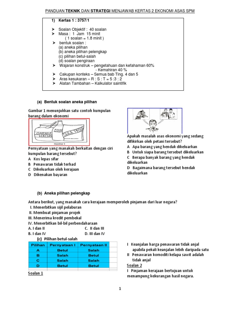 Panduan Teknik Dan Strategi Menjawab Kertas 2 Ekonomi Asas Spm 2