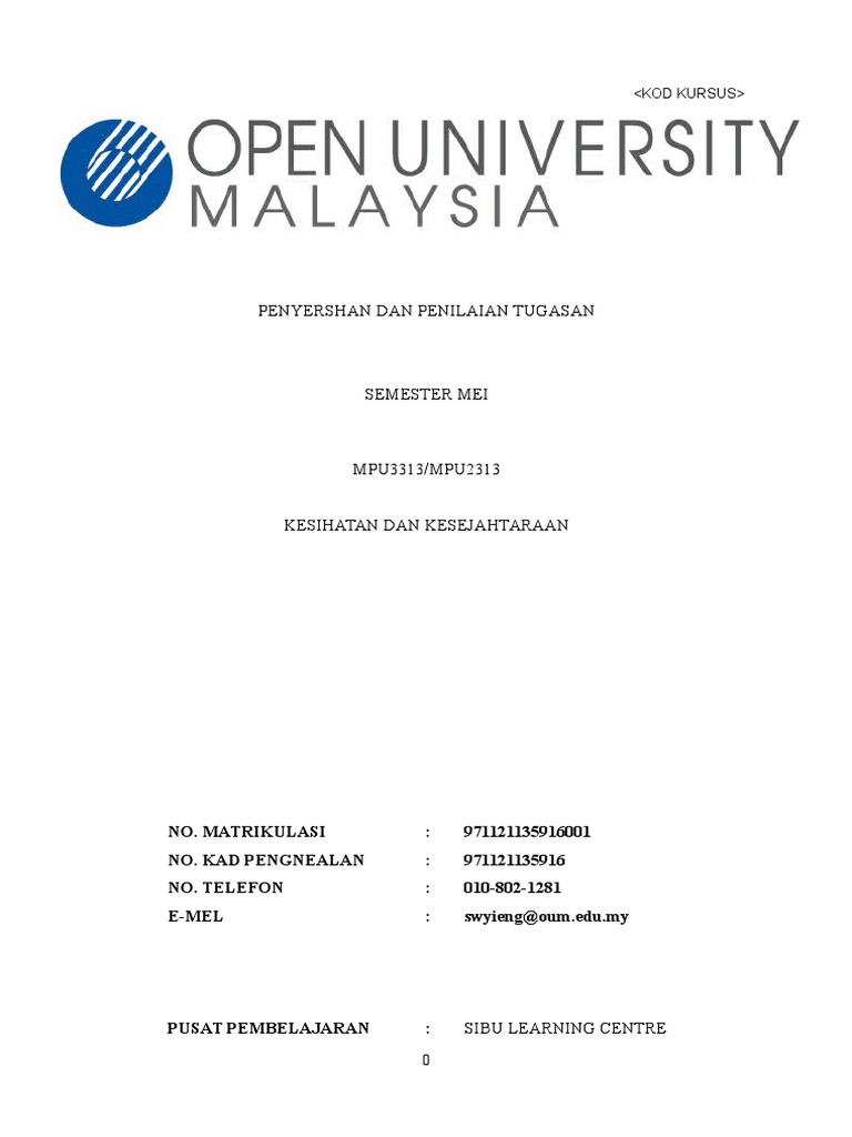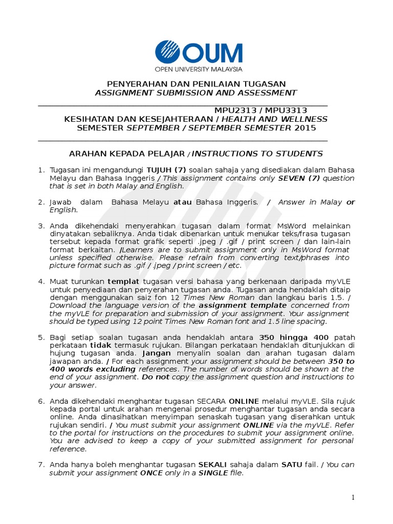 38914 Doc Penyerahan Dan Penilaian Tugasan Assignment Submission And Assessment Mpu3313 Kesihatan Dan Kesejahteraan Health And Wellness Semester Course Hero