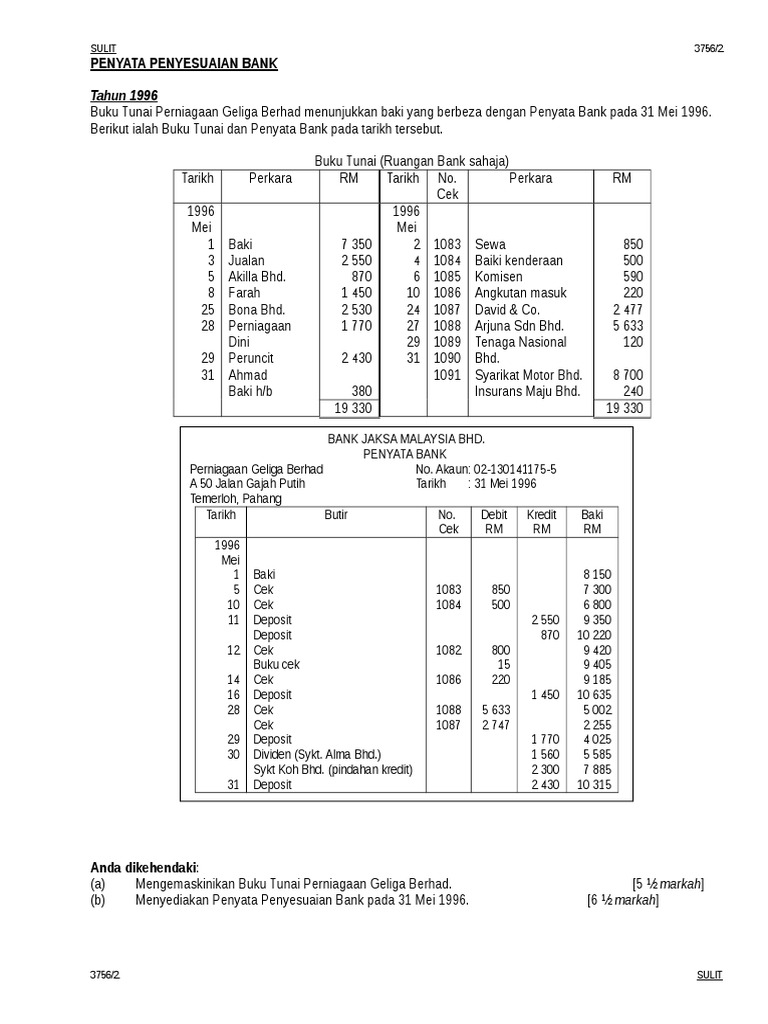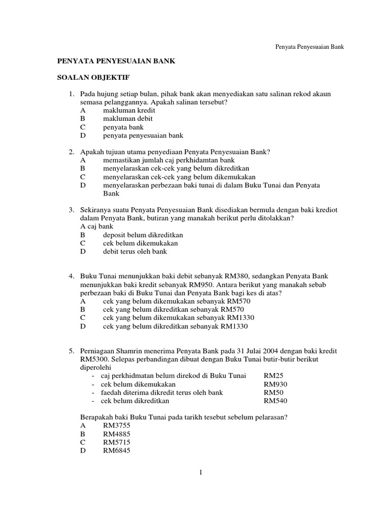 Soalan Dan Jawapan Penyata Penyesuaian Bank