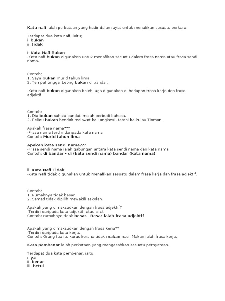 Contoh Kata Nafi Materi Pelajaran 4