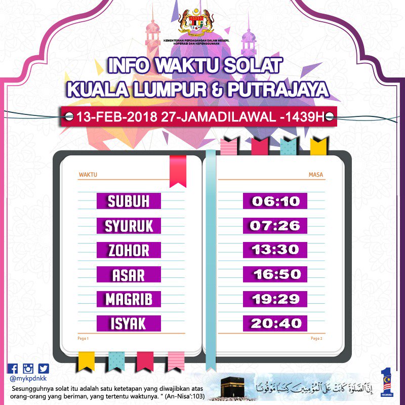 Kpdnhep On Twitter Info Waktu Solat Bagi W P Putrajaya Kuala Lumpur Dan Kawasan Yg Sewaktu Dengannya Kpdnhep Waktusolat