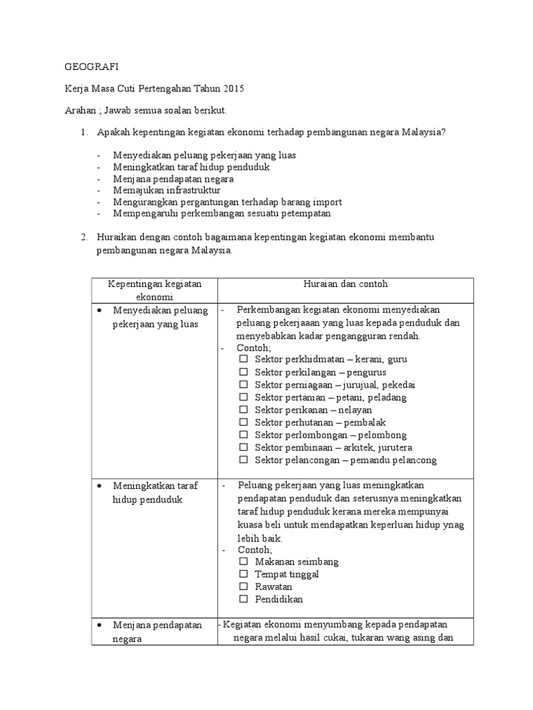 Contoh Jawapan Kerja Kursus Pt3 Geografi 2020 Kegiatan Ekonomi