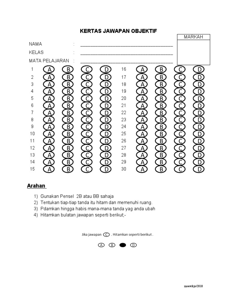Contoh Kertas Jawapan Objektif Omr Nanikalux