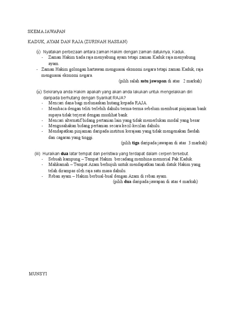 Contoh Soalan Cerpen Kaduk Ayam Raja Kerja Kosp