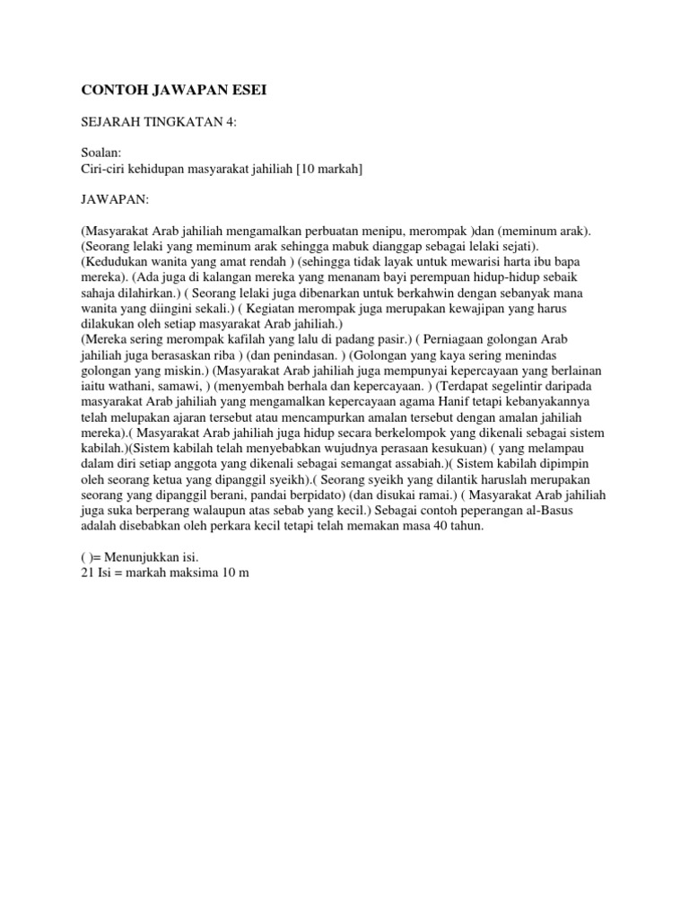 Doc Contoh Jawapan Esei Ciri Ciri Zaman Jahiliah Mohd Asri Omar Academia Edu
