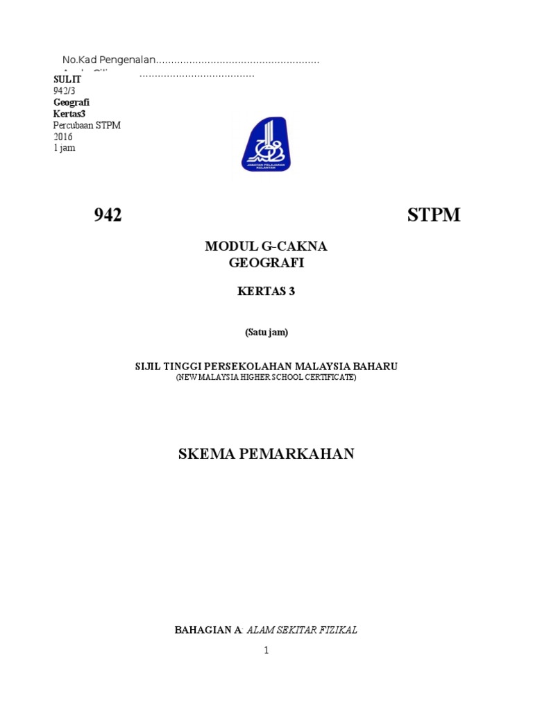 Kelantan Skema Percubaan Geografi Penggal 3 2016 Set 1 Docx
