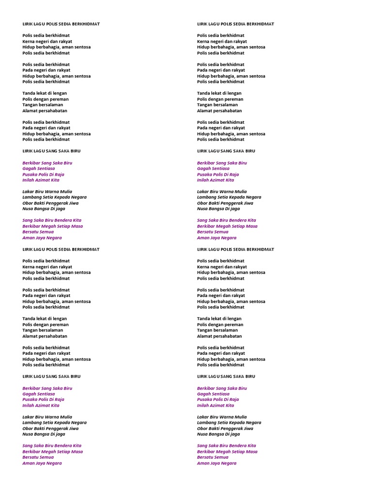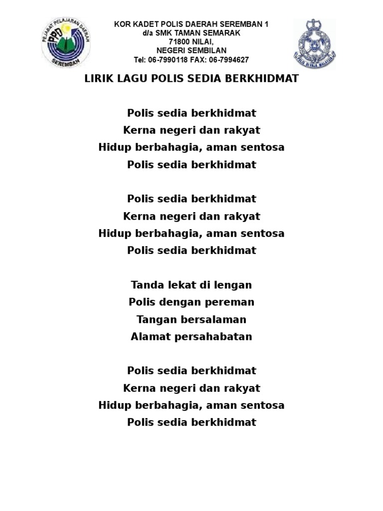 Lirik Polis Sedia Berkhidmat Docx