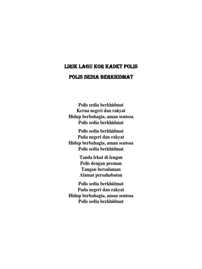 Lirik Lagu Kor Kadet Polis Docx