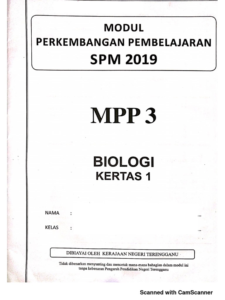Biologi K1 Percubaan Spm Terengganu Mpp3 2019 Soalan Pdf