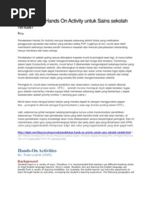 Pendekatan Hands On Activity Untuk Sains Sekolah Rendah Science Kurikulum