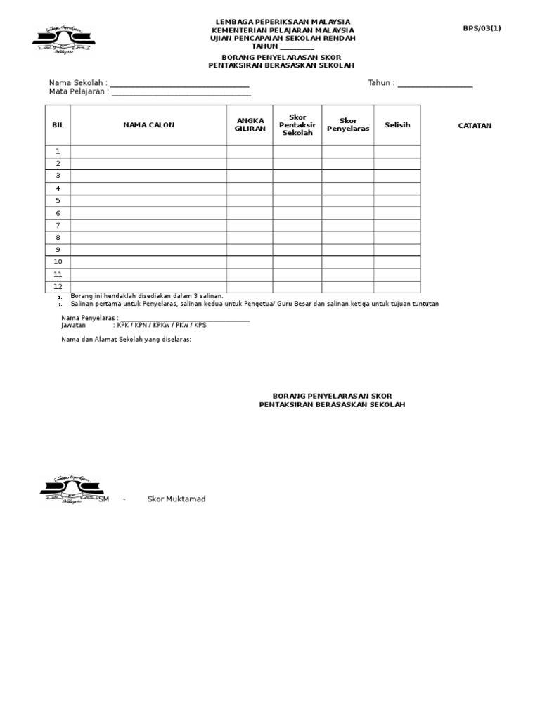 Borang Penyelarasan Skor Upsr 1doc Doc