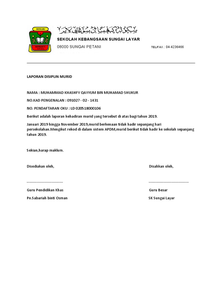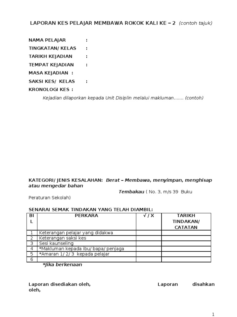 Borang Rekod Kesalahan Disiplin Murid Sk Bur