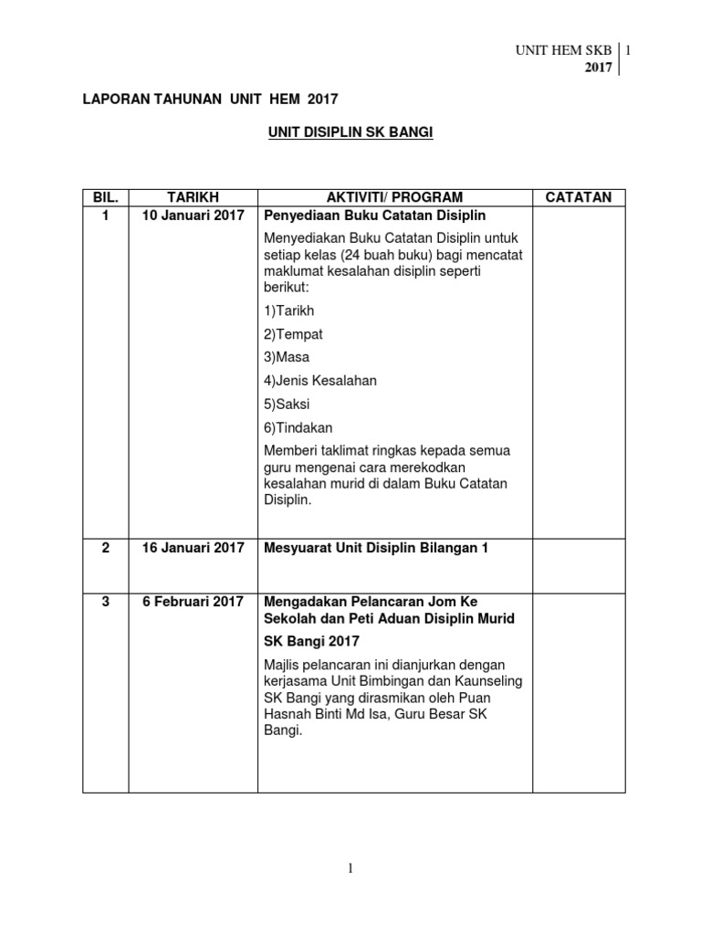Unit Disiplin Laporan Aktiviti 2019