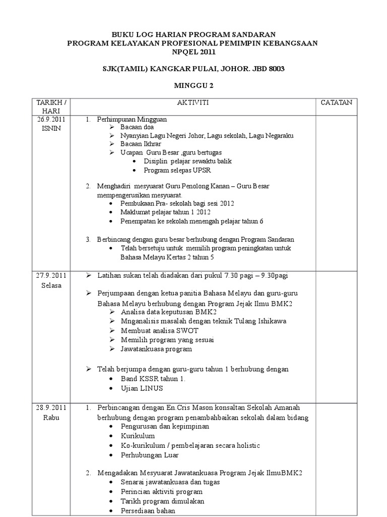 Doc Buku Catatan Harian Log Book Tengku Bima Rafarali Academia Edu