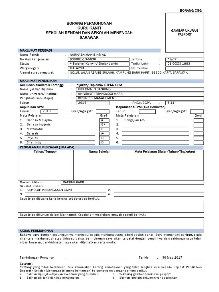 4 Borang Permohonan Guru Ganti Pdf